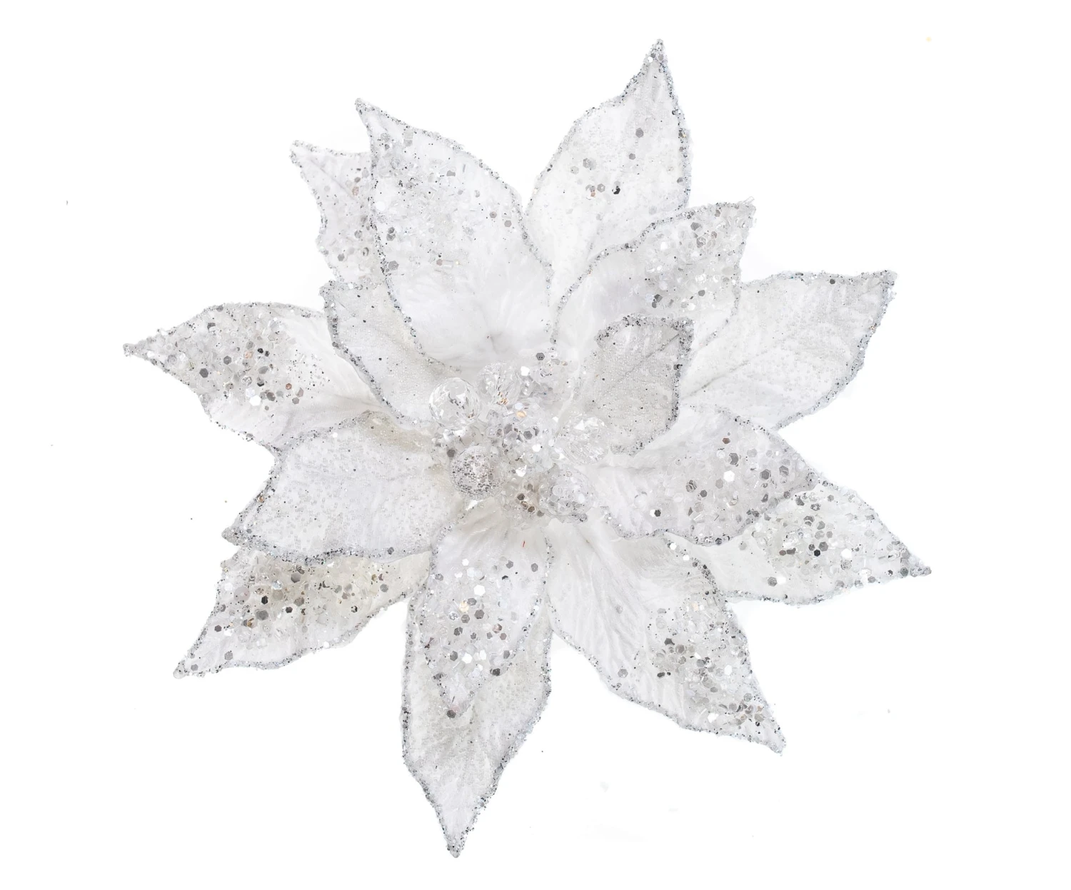 An elegant addition to your seasonal display, our red Poinsettia clips feature layers of lush texture, skillfully crafted for realism. Soft red blooms are designed to stay fresh looking season after season with absolutely no upkeep.