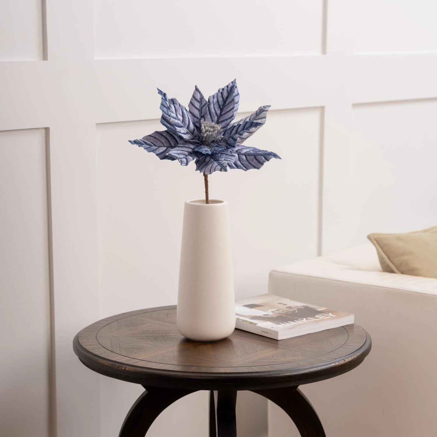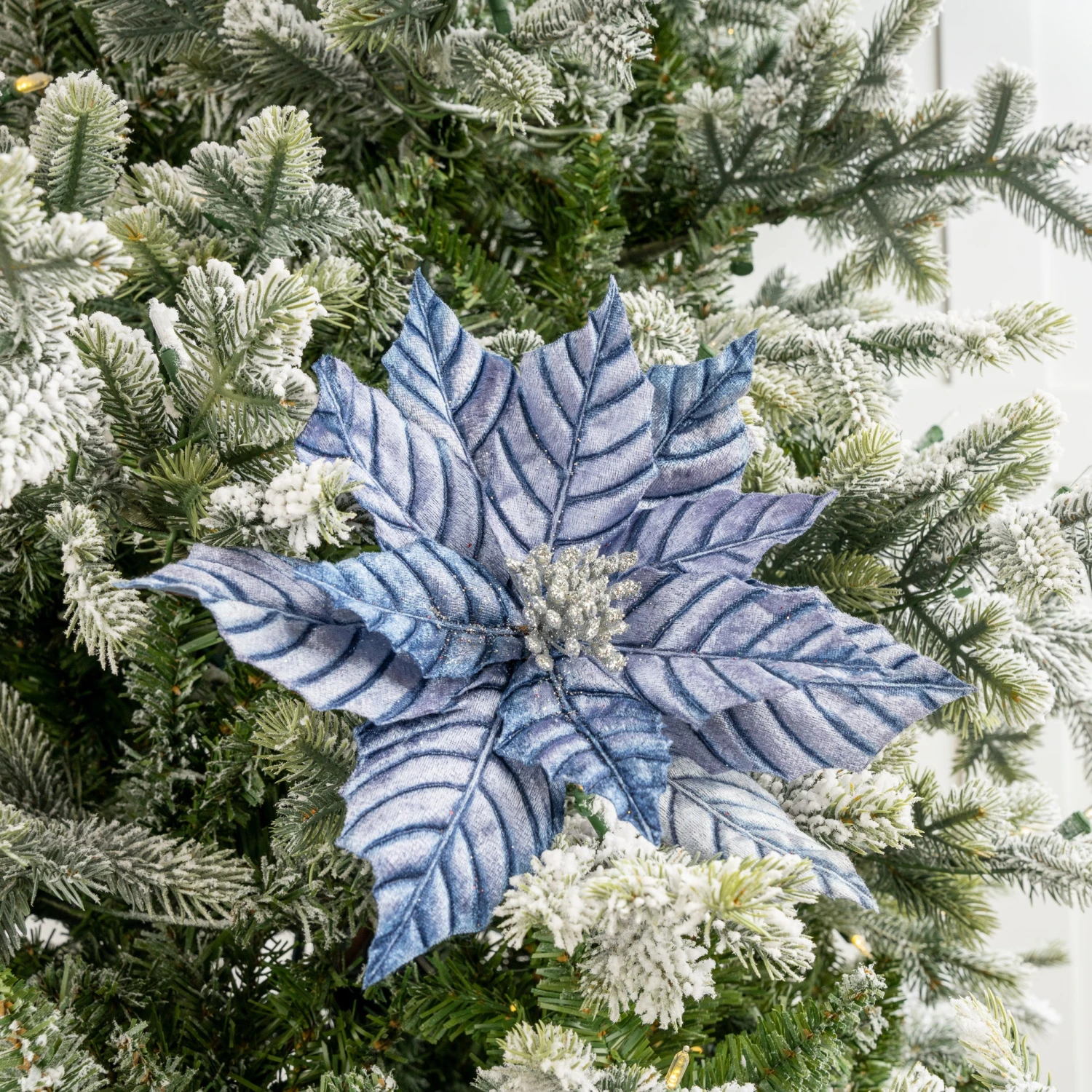 When you want to turn heads with color this Christmas, our metallic blue veined poinsettia stem gives you all the jewel-toned joy you need! Utilize throughout a blue and white Christmas look or add to your Nutcracker theme for some glamorous holiday hues!