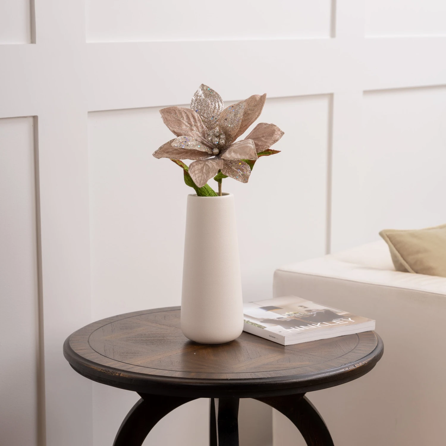 This exquisite taupe poinsettia is a Christmas classic with an elegant twist. It features velvet petals along with some sequin accents.