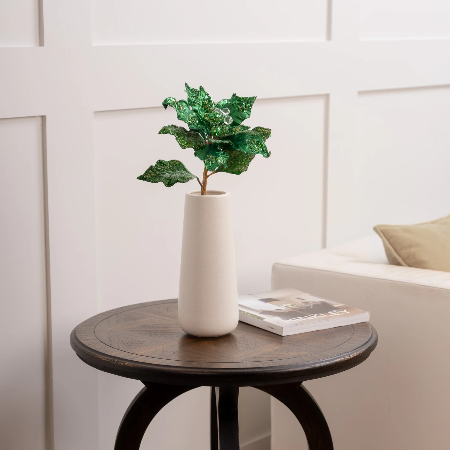 Our flowers feature a beautiful array of unique stems complete with contrasting pieces like this striking Emerald Green poinsettia stem. This eye catching color, is beautiful for a traditional red and green decor. This green also pairs very well with gold accents.