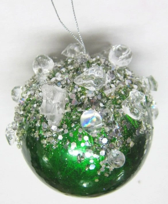 3.5″ Emerald & Silver Jewel Ornament Set Of 6