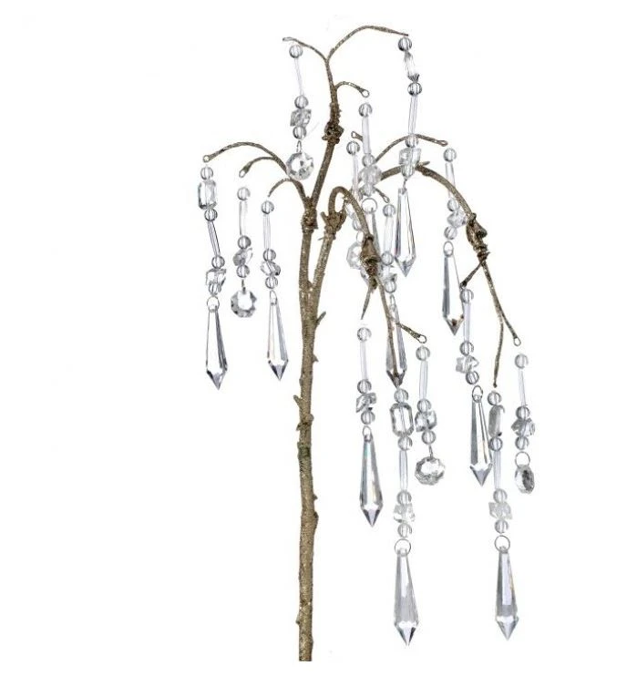 Your decor will bloom with elegance using this stunning crystal drop! This lovely stem features a gold-wrapped stem that branches out and drapes down with clear, acrylic beads on the end of each strand. The teardrop-shaped beads are faceted for ravishing reflections and shine in the light. Use it to create a dazzling and fancy table centerpieces or flower arrangements that burst with beauty.