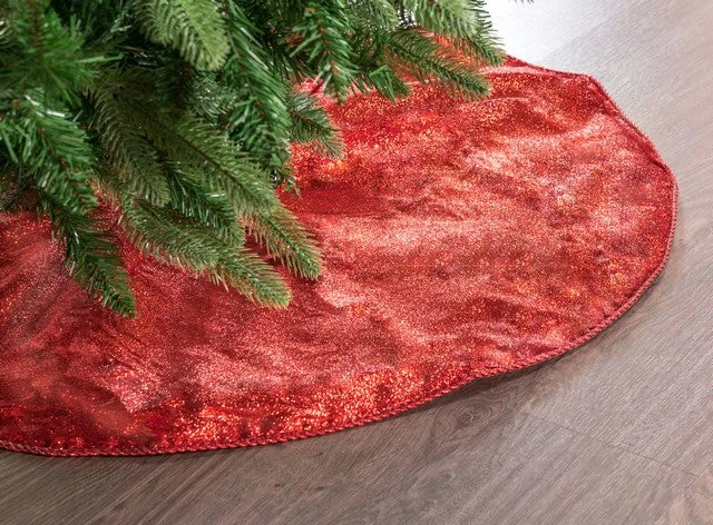 Decorate your Christmas trees with this elegant skirt, which can offer a dazzling appearance. Delineating a satin-like base with crimson red glitter, this accessory will add a whimsical touch to your trees with its glittery finish.