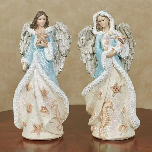 4″ Aqua & Ivory Seaside Angels Assorted Set Of 2