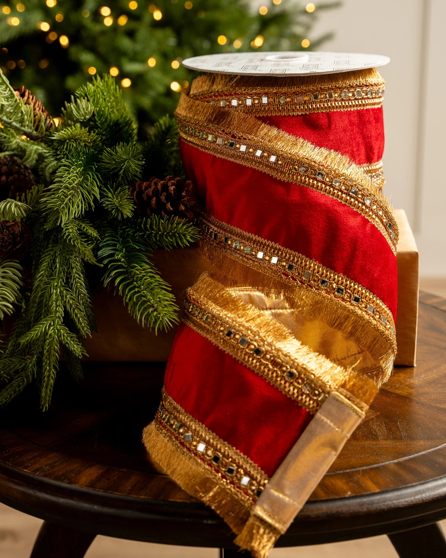 4″ X10YD Red Velvet Ribbon With Mirror On Edge