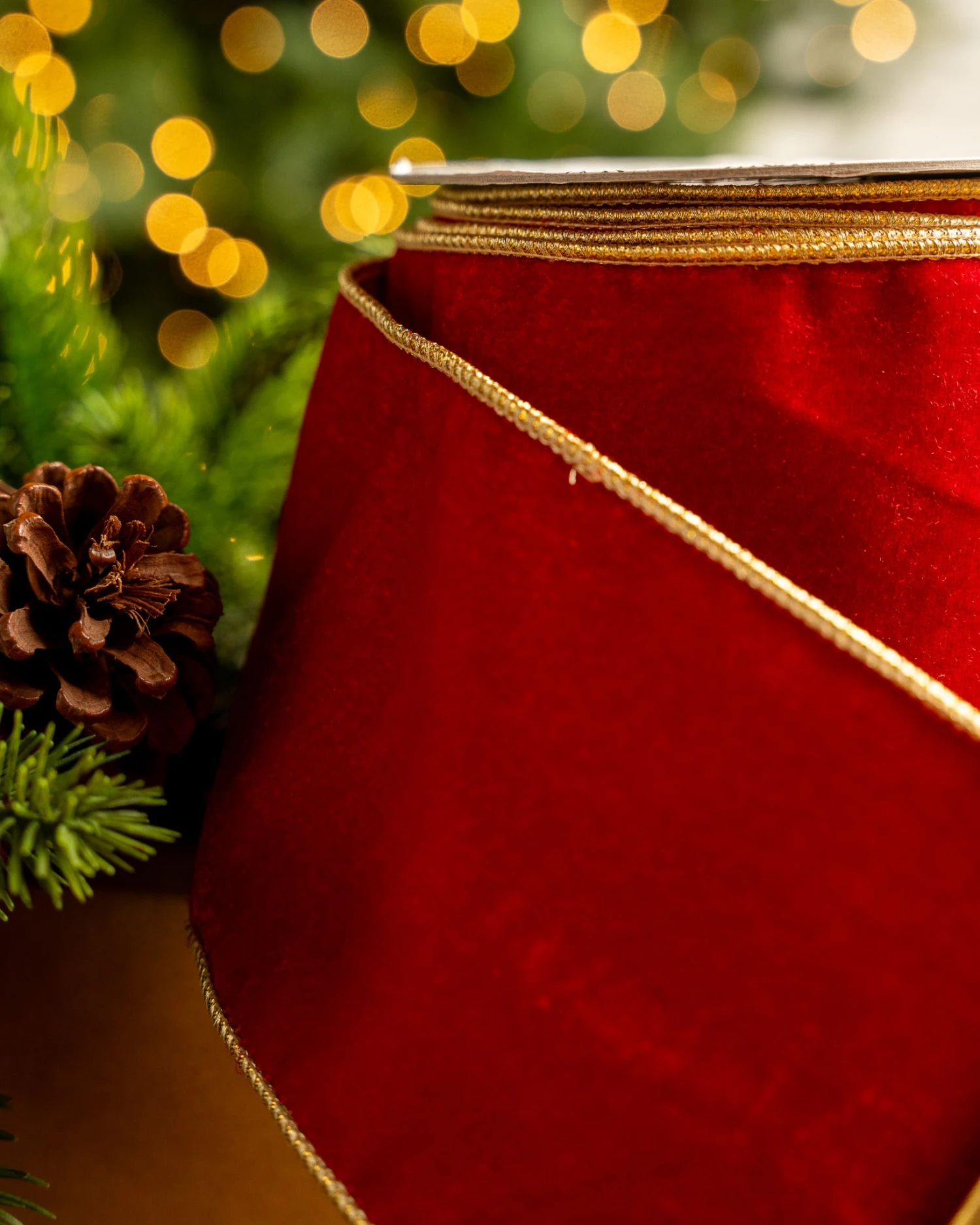 SKU: DGHLY 1695826887 Categories: Ribbons & Bows, Tree Decorations Tags: Collection:The Christmas Palace Collection, Color:Candy Red, Material:Velvet, Size:10 Yard, Style:Ribbon, Width:4"